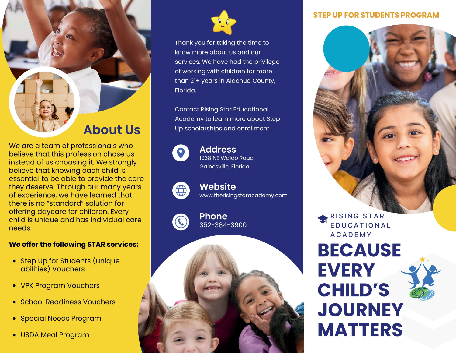 At Rising Star Educational Academy, we believe every child has the potential to shine. With Step Up scholarships, more families can access high-quality programs, specialized services, and a nurturing environment where children grow in confidence, independence, and skills for life.